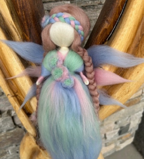 Filcovaná víla - elfinka z ovčího rouna - velikost cca 25 cm - na zavěšení